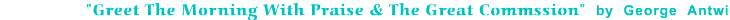 The only message that saturated my mind was ?The Great Commission? I knew that the Lord was asking me to get up and write this song; so I got up and He guided me to compose this song and sang with my guitar out rightly. GOD DID IT ALL.